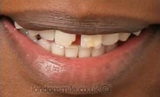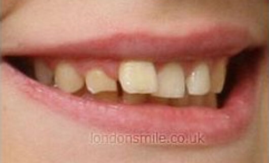 LEARN MOREA combination of crooked front teeth and an accident has left this lovely young patient with a broken smile.